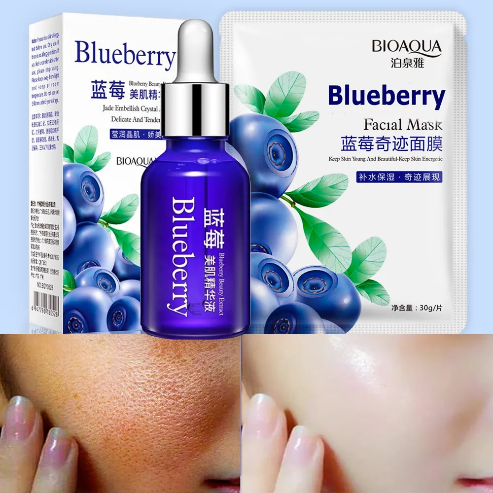 1 x BIOAQUA Wonder Blueberry Whitening Pure Essence Hyaluronic Acid Face Serum & BIOAQUA Blueberry Moisturizing Facial Sheet Mask