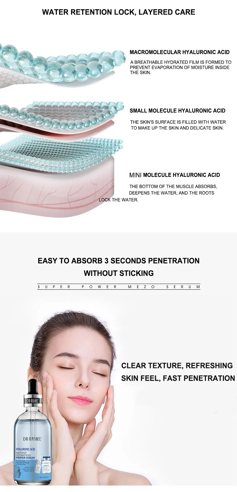 - Benefits : Hyaluronic acid serum helps keep your skin moisturized all day and night with an invisible layer of moisture. It is a hybrid serum that softly blurs the skin, reduces the appearance of pores and imperfection, and leaves a brightened fine-turned effect. Achieve ultimate hydration and a youthful glow. Plump skin deliver intense hydration